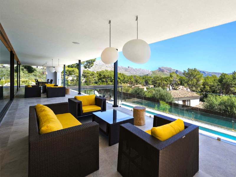 Esta impresionante villa recién construida es una de las propiedades de alquiler de lujo más destacadas del norte de Mallorca. De diseño fresco, chic y contemporáneo y construida con los mejores materiales disponibles. Situado en una suave ladera con vistas al mar.