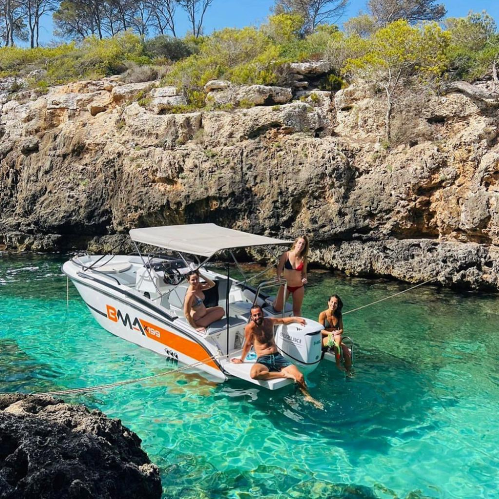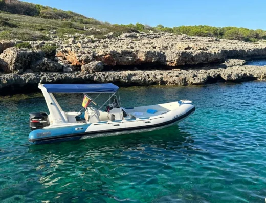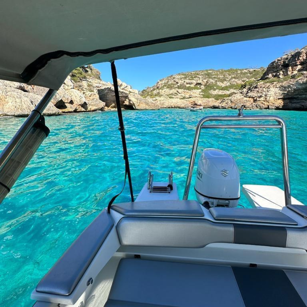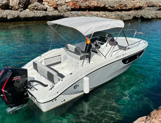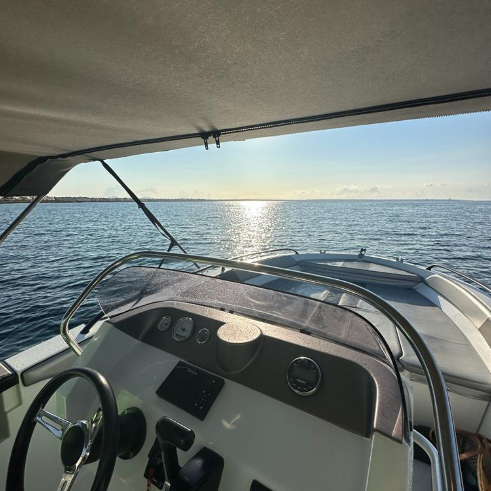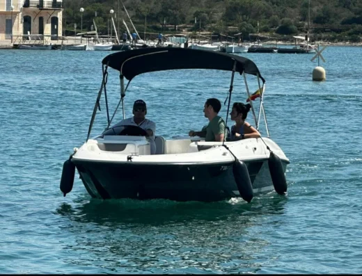 Provista de toldo con zona de solarium en la parte de proa, radio bluethoot.