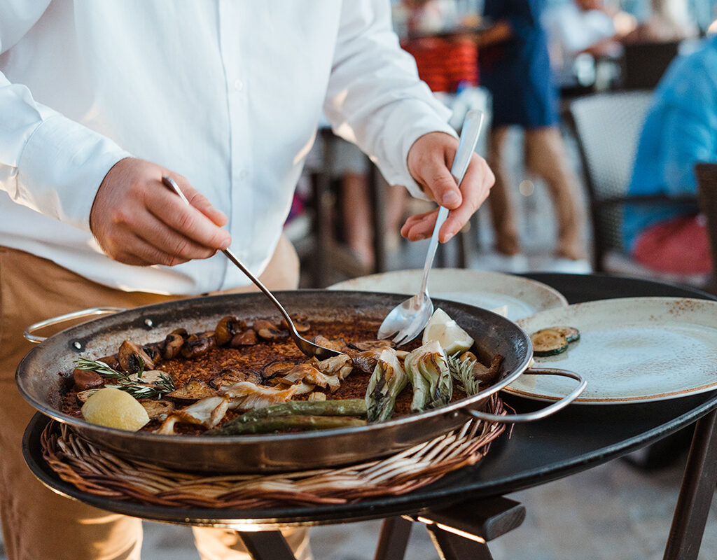 Platos inspirados en la gastronomía local y servidos en una terraza al aire libre con increíbles vistas del Mediterráneo.