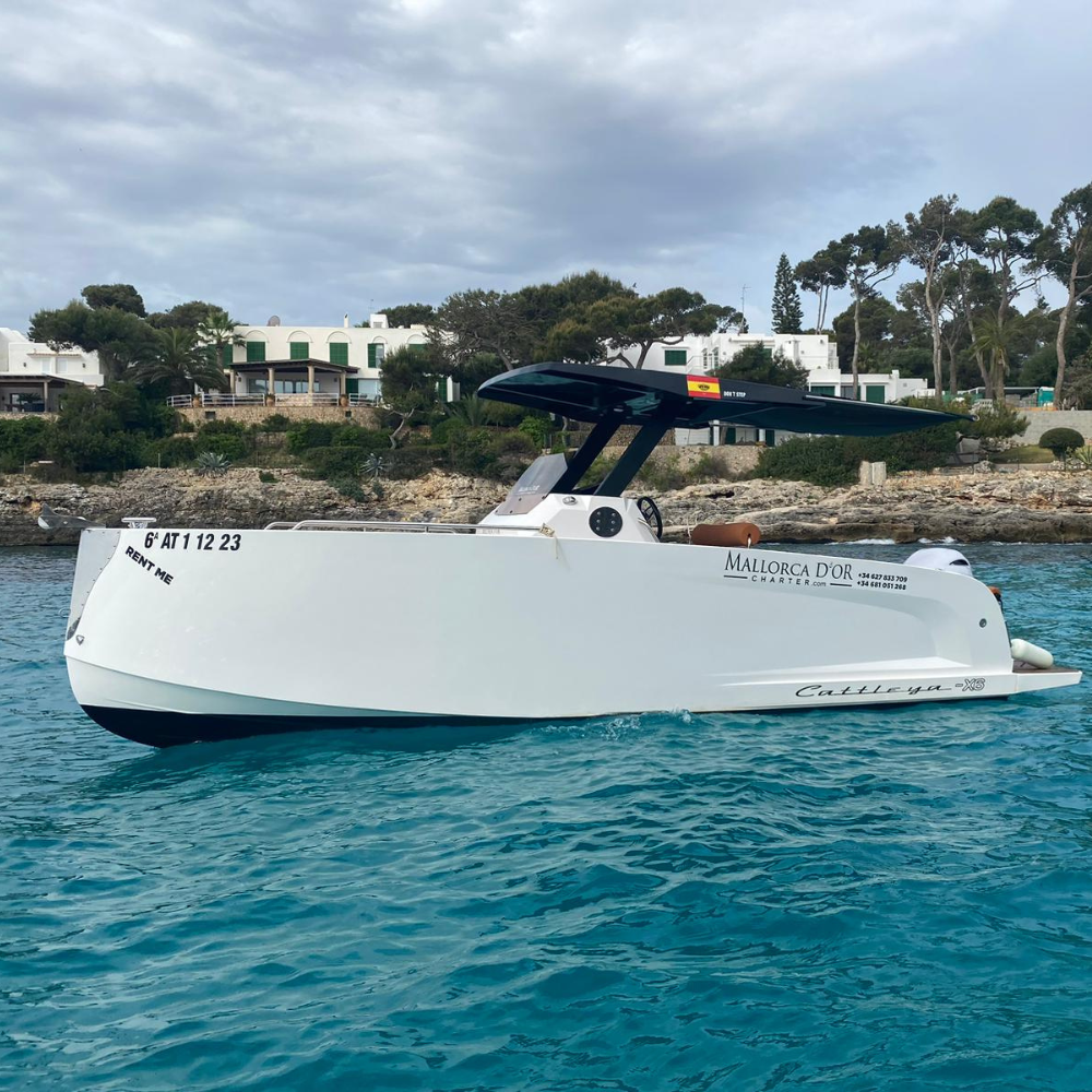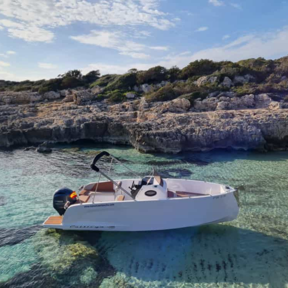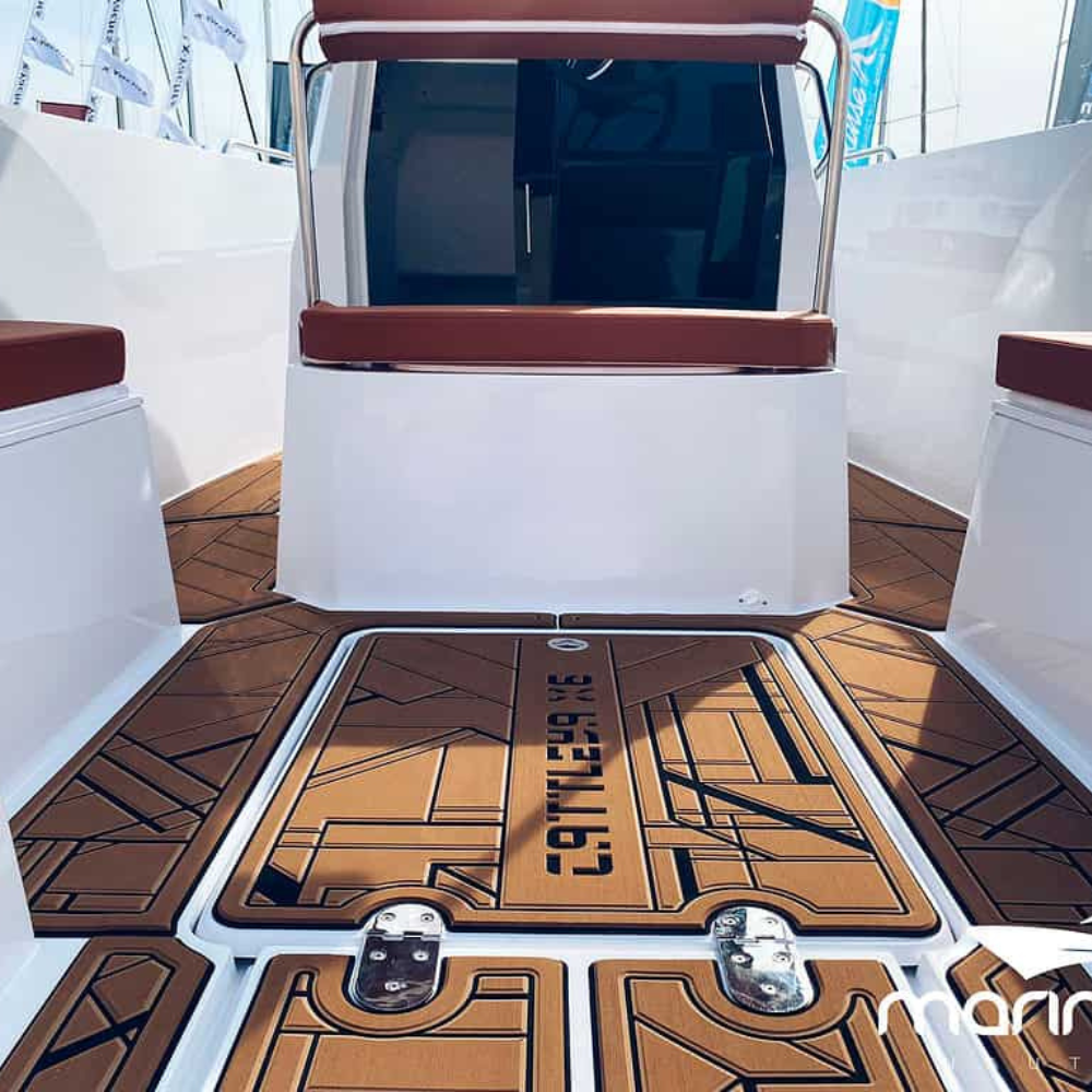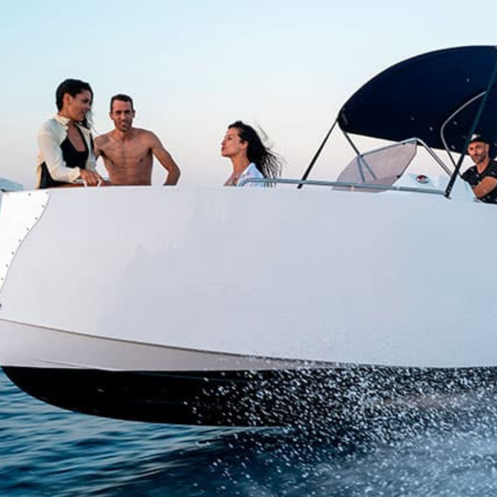 Provista de toldo con zona de solarium, radio bluethoot,  en proa y popa plataforma baño muy amplia y cómoda, con una seguridad interior gracias a su alto franco-bordo que ará de la navegación segura y confortable.