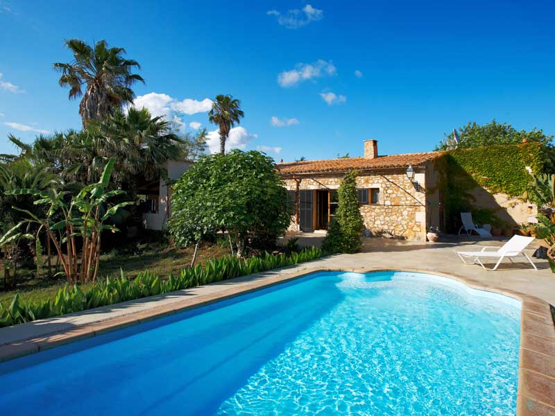 La finca es un complejo muy bonito con cuatro casas rurales que han sido restauradas con cuidado en el típico estilo mallorquín. Cada casa está rodeada por un terreno grande con almendros, algarrobas, olivos, limoneros, rosas y palmeras.
