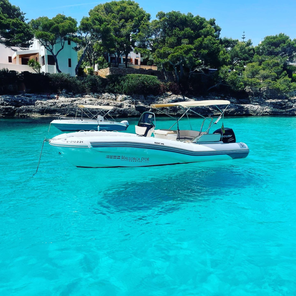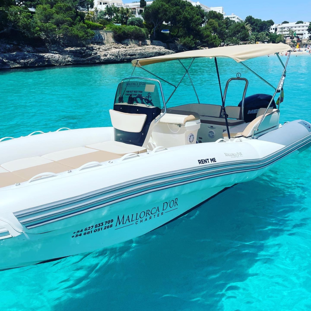Provista de gran toldo con zona de solarium, radio bluethoot, ducha en popa, molinete eléctrico, gran solárium en proa.