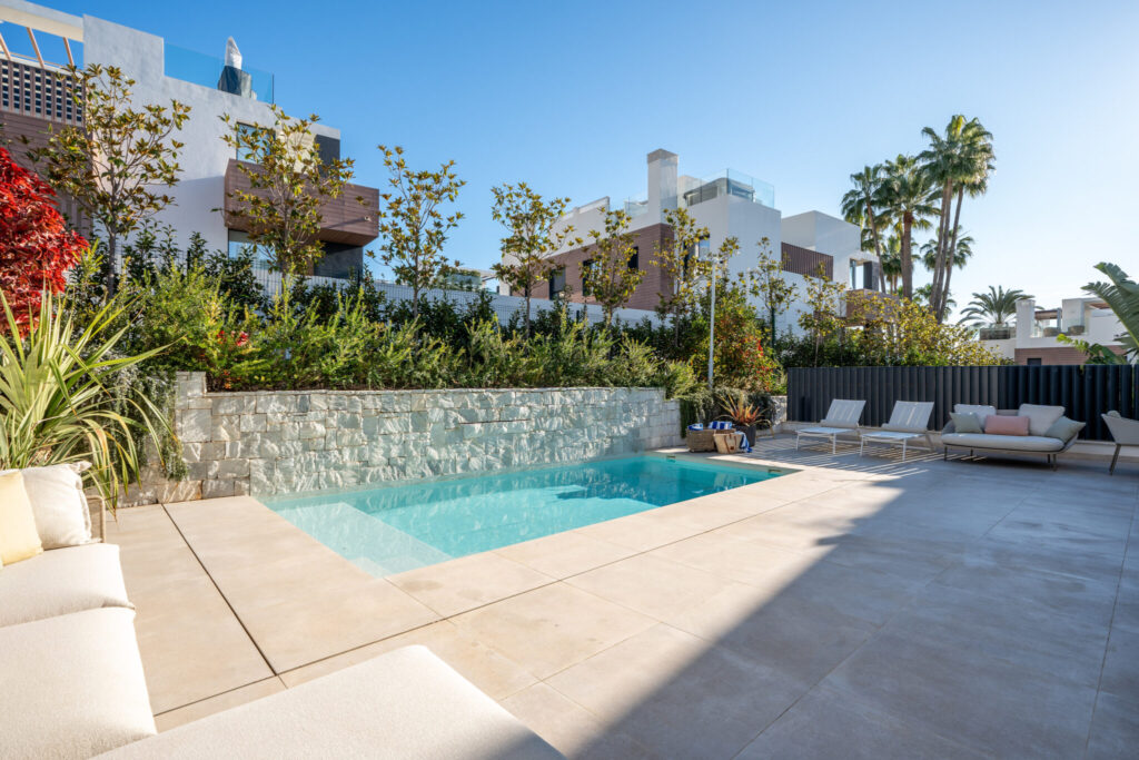 Sal al exterior y descubre tu propio oasis privado. Una reluciente piscina rodeada de terrazas bañadas por el sol ofrece el escenario ideal para la relajación o el entretenimiento. Completada en 2021, la villa desprende refinamiento con suelos de mármol italiano, puertas de cristal de suelo a techo que enmarcan impresionantes vistas y exquisitos acabados en cada detalle.