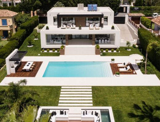 Ubicada en la prestigiosa y tranquila urbanización Sierra Blanca, Villa Favetto representa el más alto estándar de calidad en todos los aspectos. Su diseño fresco y contemporáneo es obra del reconocido diseñador de interiores AJ Flores. Desde el momento en que entras, la distribución de concepto abierto y la abundante luz natural crean una sensación de amplitud y bienestar. La planta baja cuenta con una acogedora sala de estar en tonos claros, con vistas a los jardines y la piscina. Sus amplias terrazas y su moderna cocina con un elegante acabado en gris pizarra son igualmente impresionantes.