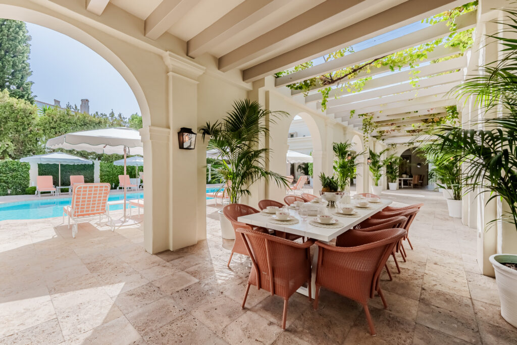 Los espacios exteriores de Villa Hernando crean un oasis de tranquilidad. Su amplia piscina de 78 m², rodeada de exuberante vegetación, ofrece un entorno ideal para días soleados bajo el clima mediterráneo. Además, cuenta con múltiples áreas de descanso y comedor al aire libre, tanto en la terraza como bajo la sombra de la pérgola, proporcionando rincones acogedores para reuniones o cenas al fresco. Ya sea para disfrutar de un café matutino, relajarse junto a la piscina o pasear por los jardines meticulosamente cuidados, cada espacio ha sido diseñado para inspirar tranquilidad y bienestar.