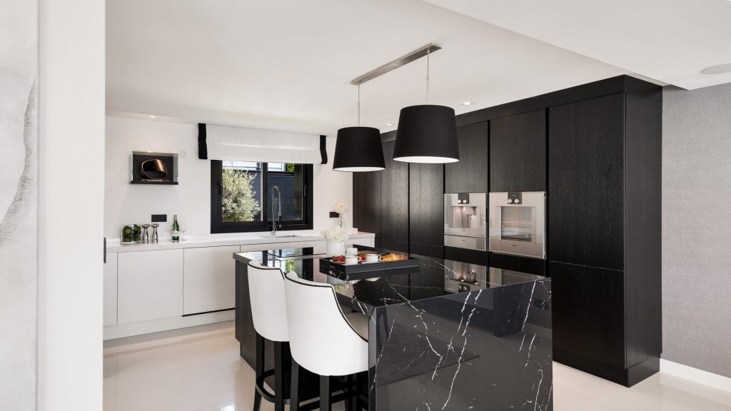 Con un diseño moderno y elegante, la villa ha sido construida con los más altos estándares de calidad. La planta baja cuenta con un amplio salón de concepto abierto, inundado de luz natural, que fluye hacia una cocina de diseño Gaggenau, equipada con electrodomésticos de última generación.