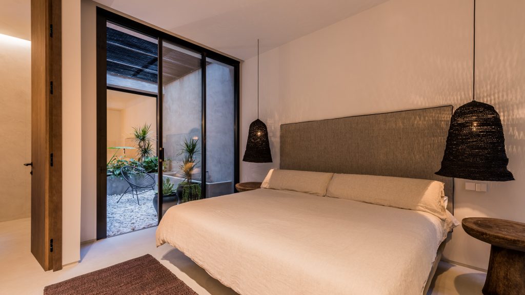En la azotea, los huéspedes pueden disfrutar de una piscina de inmersión, una zona de relax con chimenea exterior, y un bar privado, con vistas espectaculares a la Sierra Blanca, la piscina y el jardín.