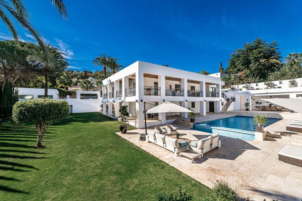Ubicado en el corazón del ‘valle del golf’, donde se puede llegar a cuatro campos de golf en pocos minutos. La arquitectura cuidadosa y el paisaje exuberante crean un grado de espacio agradable, intimidad & luz. Vivienda frente al golf con impresionantes vistas a La Concha, que se puede disfrutar desde muchas habitaciones. Bien distribuido con una cocina americana de generosas dimensiones y totalmente equipada, un salón igualmente impresionante con varias áreas de descanso con alfombras individualmente, un comedor acogedor, todo conectado por una idílica terraza envolvente con vista a la piscina, jardines, y campo de golf.