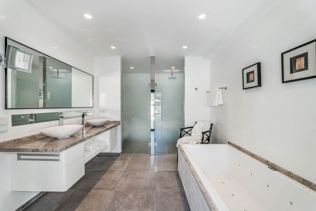 Todos los dormitorios tienen baño y armarios empotrados, ventanas de piso a techo y acabados de alta calidad con baños de gran tamaño. Esta elegante villa cuenta con una bodega con temperatura controlada, área estilo patio en el nivel inferior, sistema de domótica, chimeneas de leña y persianas eléctricas. El exterior sofisticado de la propiedad está rodeado por un jardín maduro y tropical y mucho color.
